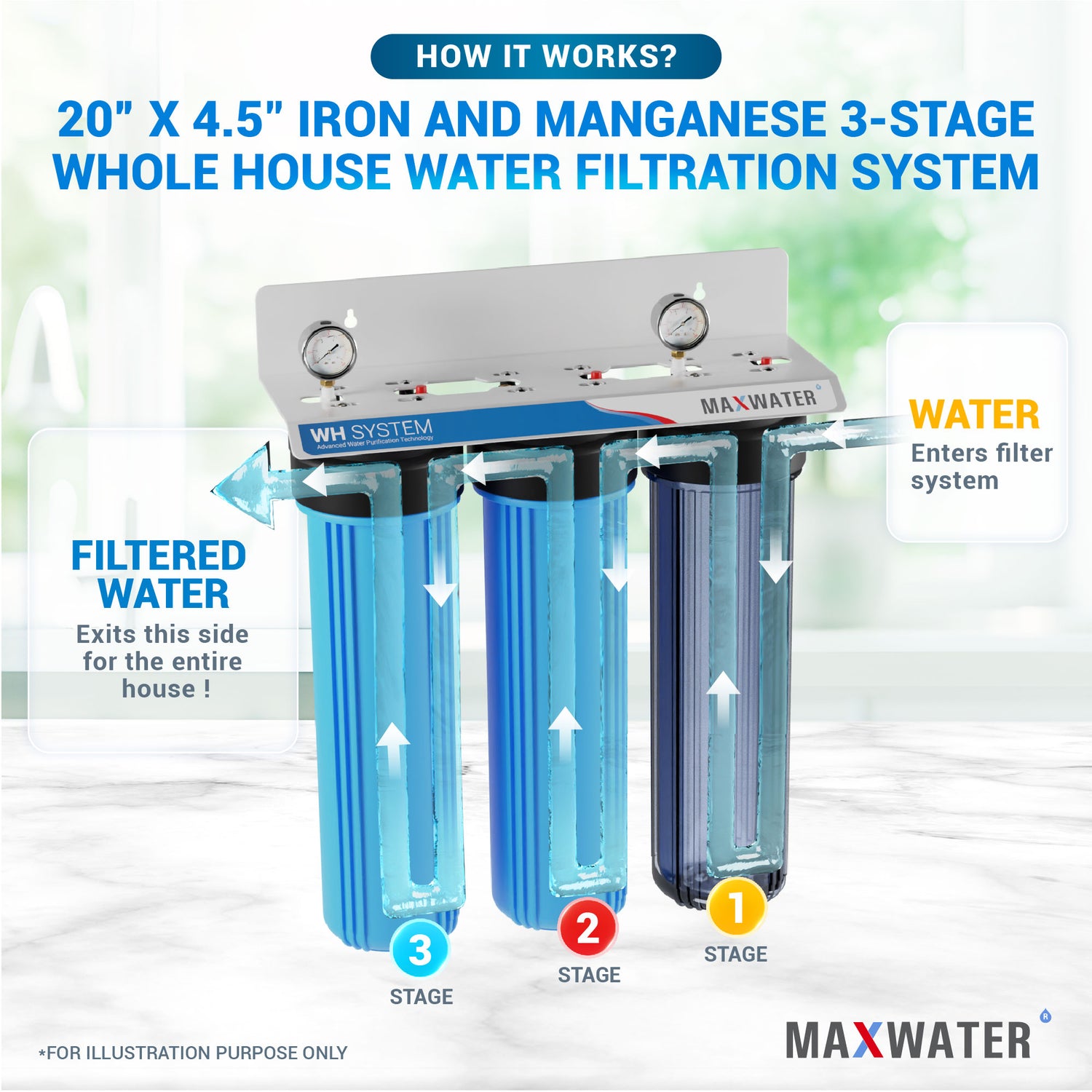 Système de filtration d'eau pour toute la maison, réduction du fer et du manganèse, taille – 20" x 4,5", entrée/sortie 1 pouce