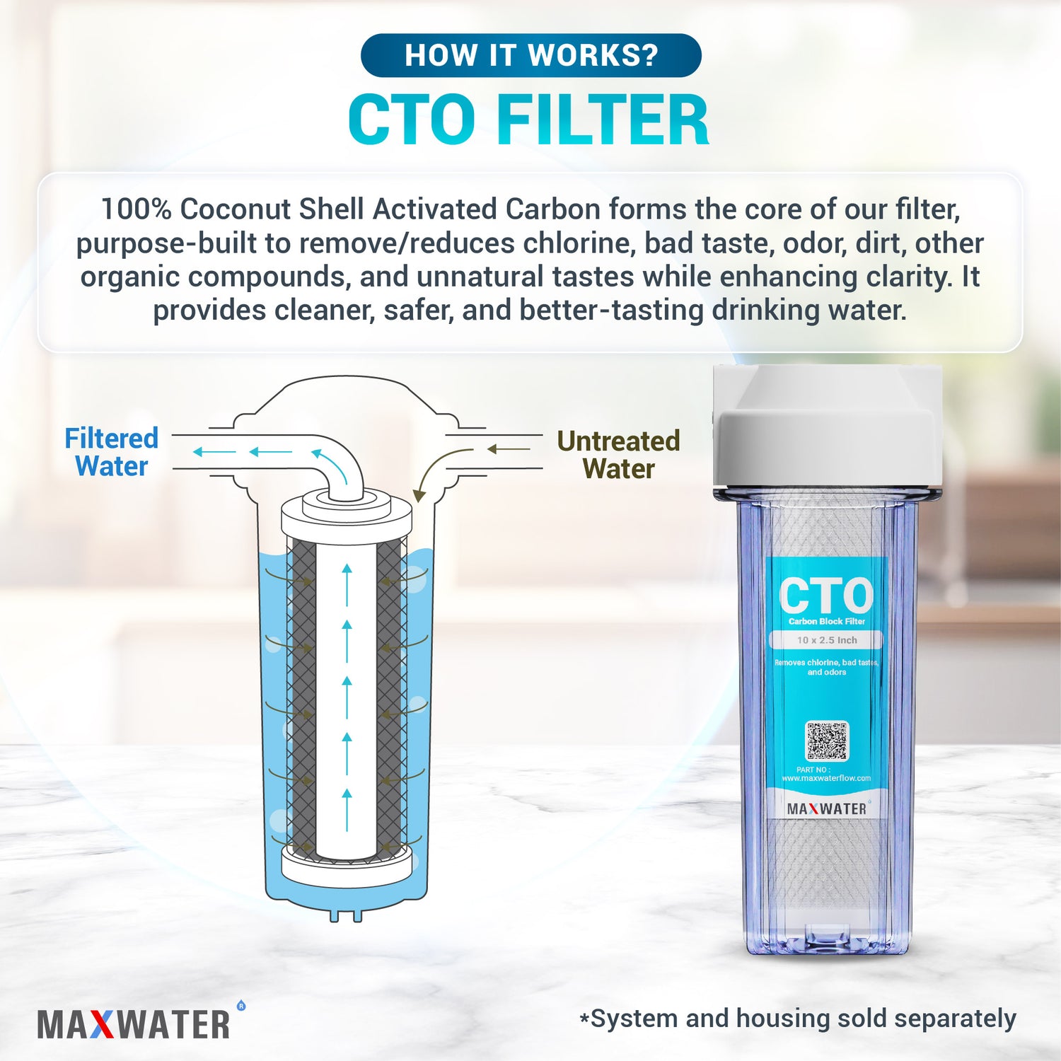 CTO Carbon Block Filter Cartridge for RO System or Whole House System, Size - 10" x 2.5"