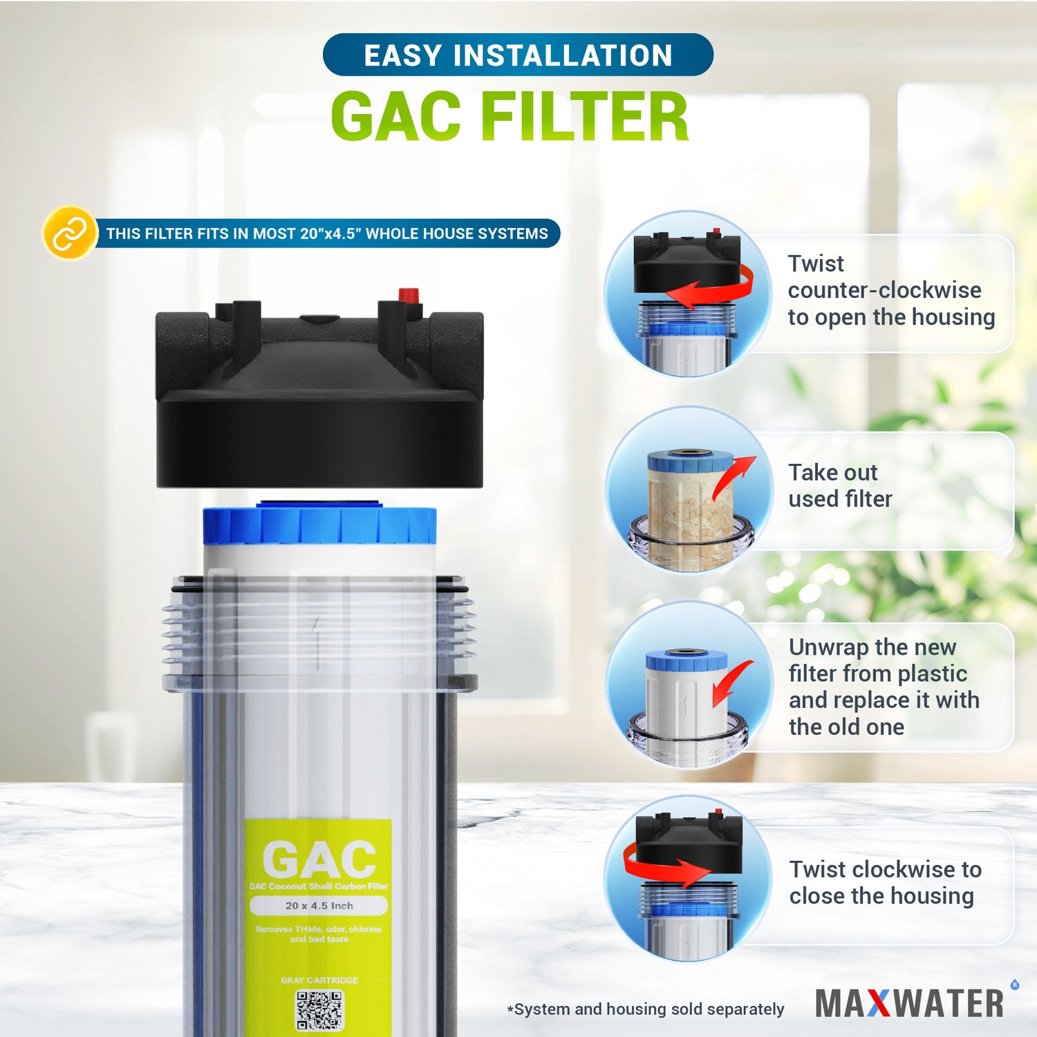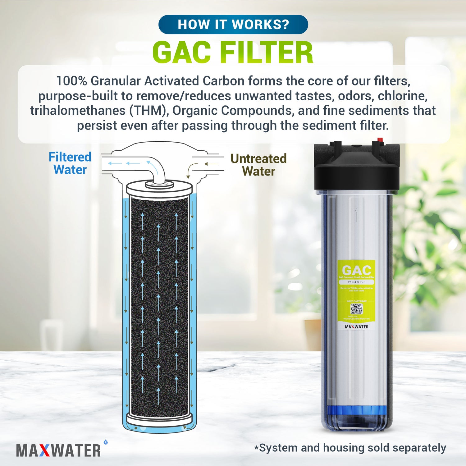 GAC Filter Cartridge for Whole House System, Size - 20" x 4.5"