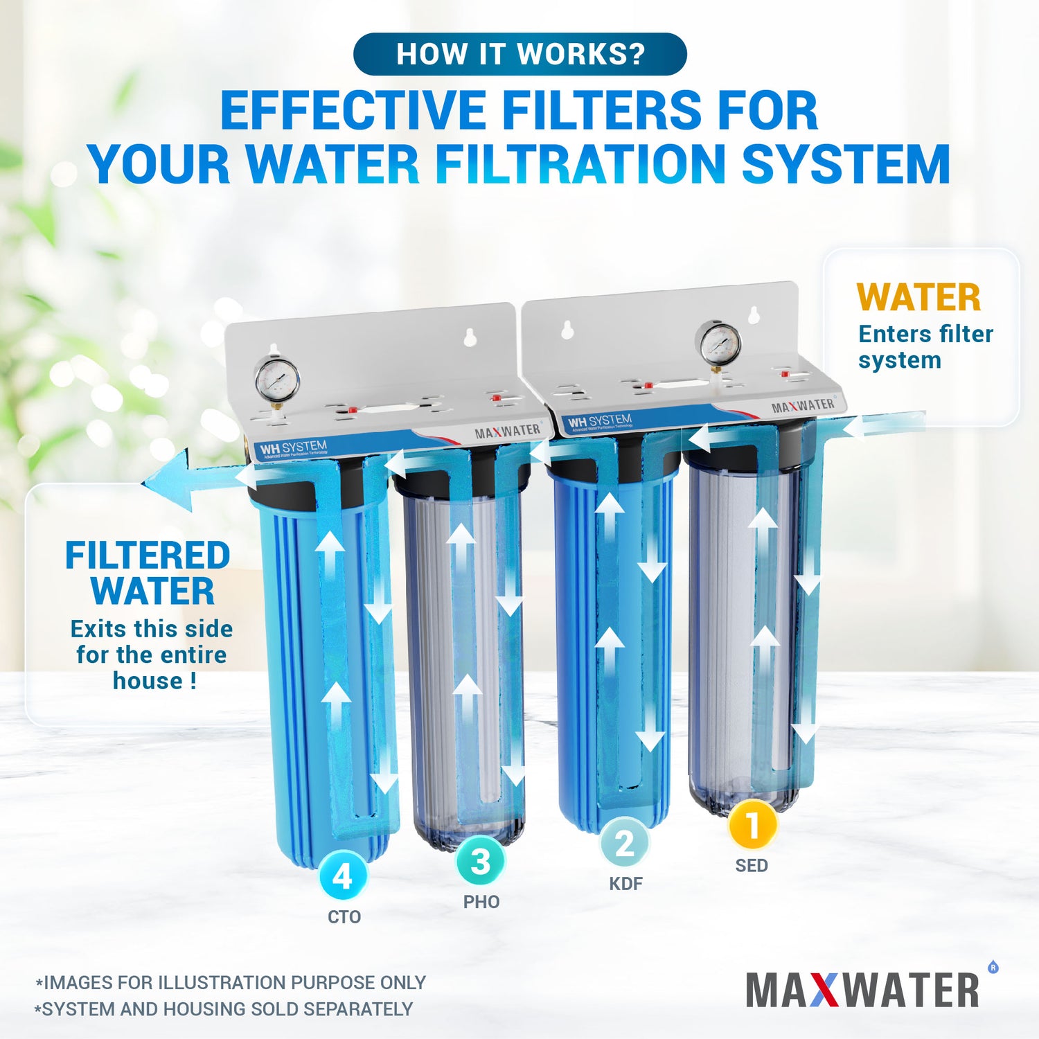 These filters effectively removes or reduce iron, heavy metals, hydrogen sulfide, chlorine, sulfur, dirt, discoloration, chloramines, bad taste, and odors. It guarantees that the water streaming from every faucet, showerhead, and household appliance embodies the essence of Quality Water, conforming to your highest expectations.