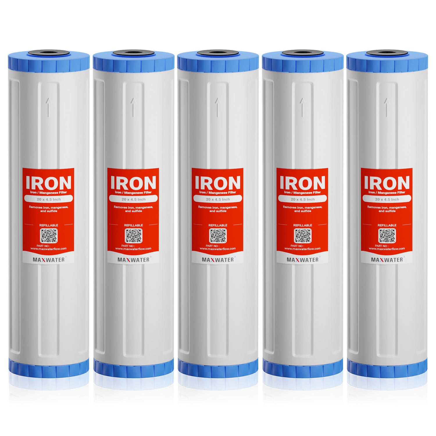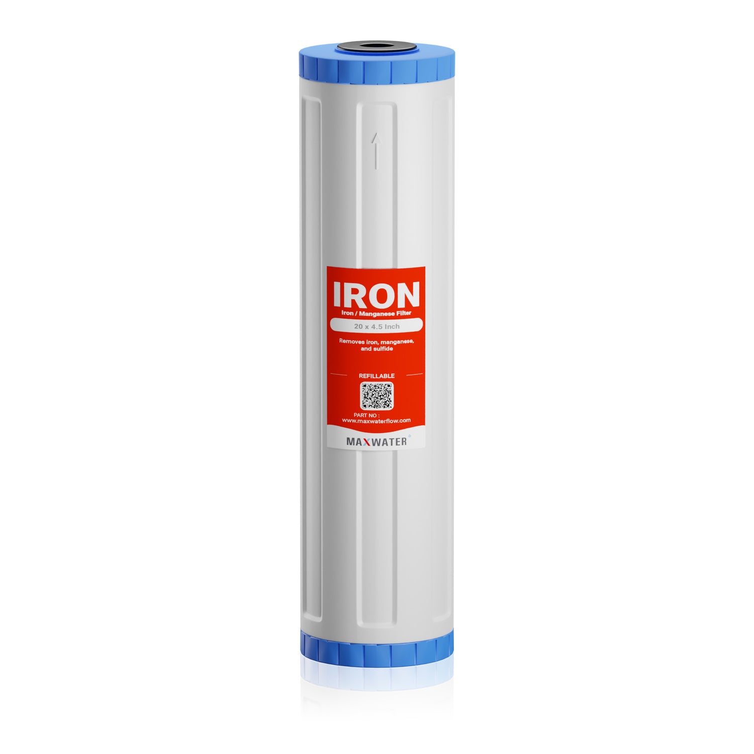 Iron/Manganese Reduction Filter Cartridge (Refillable) for Whole House System, Size - 20" x 4.5" - 1 Pack is backordered and will ship as soon as it is back in stock.