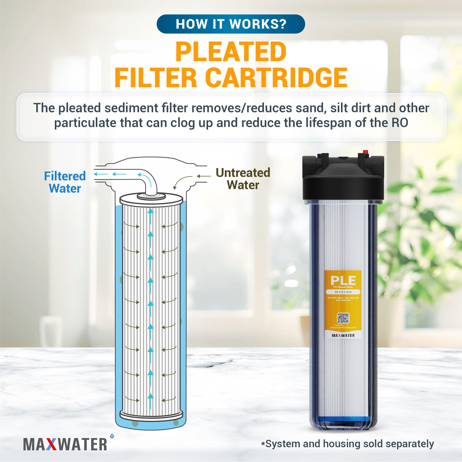 Pleated Filter Cartridge (Reusable) for Whole House System, Size - 20" x 4.5"