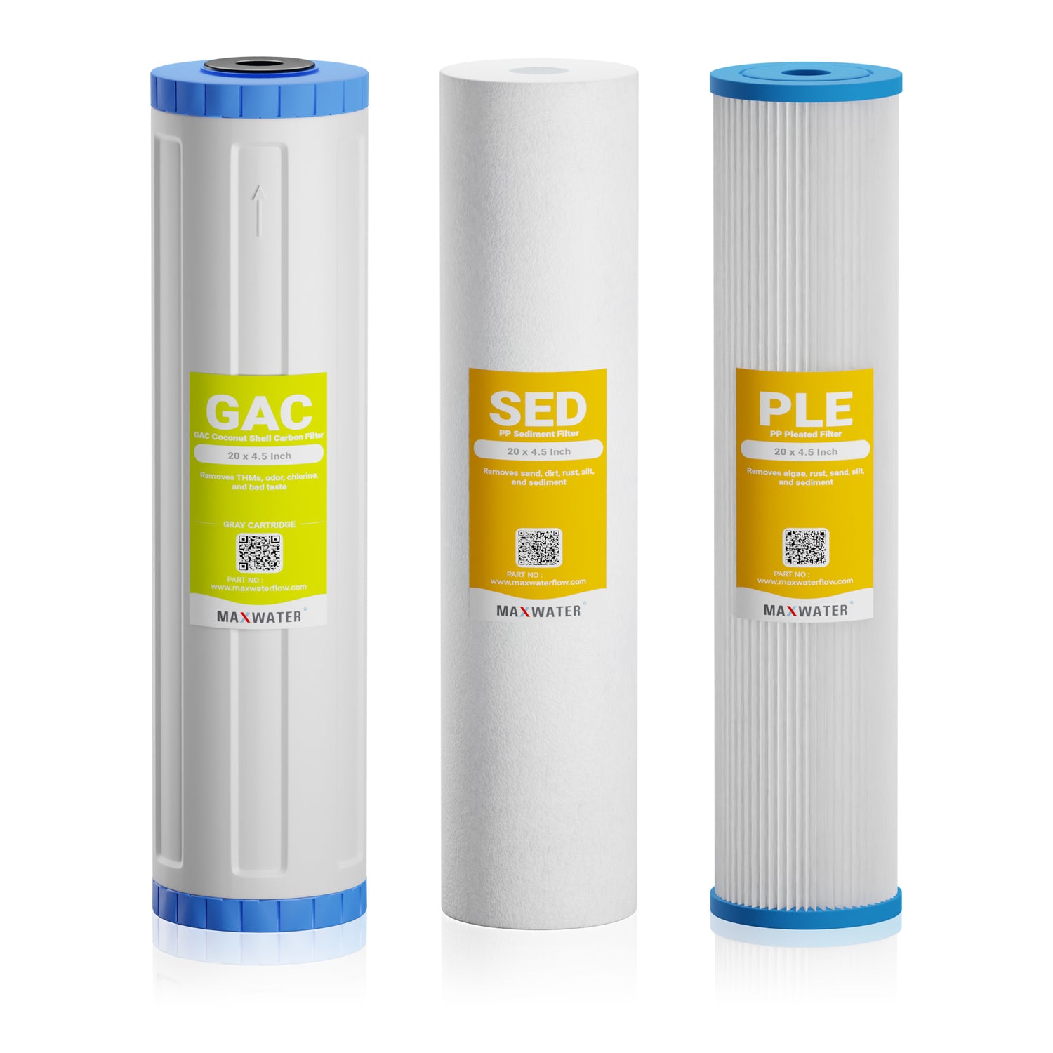 - 1st Stage - 10 Micron Pleated Sediment Filter (PLE): Remove small particles & suspended matter such as silt, rust, sand, scale particles from water. Part number: 104117.