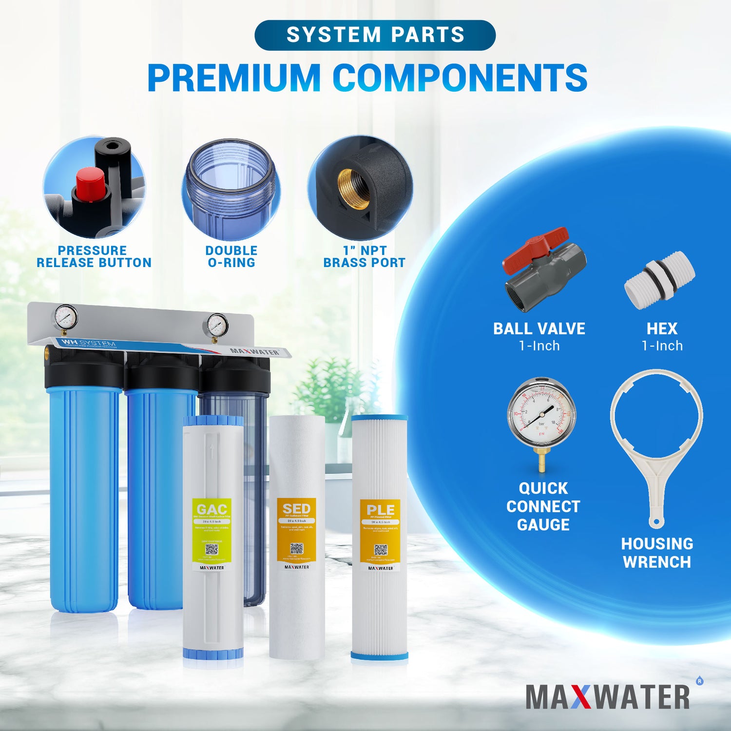 Max Water provides a comprehensive selection of replacement filters and components to optimize your whole house water purification system. Our genuine water components are designed to boost efficiency and extend the lifespan of your water purification system, all backed by our dedicated team of water treatment experts.